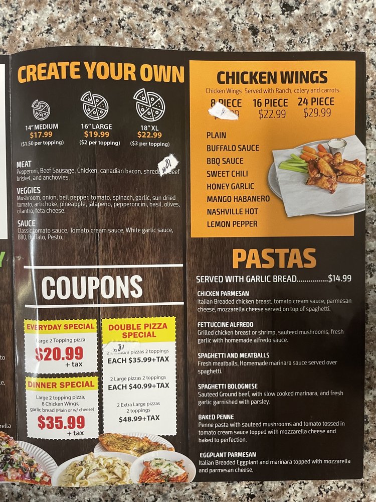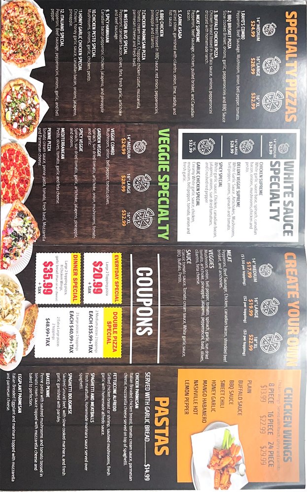 pepperoni, sausage, onions, bell peppers, fresh garlic, and pepperoncini.