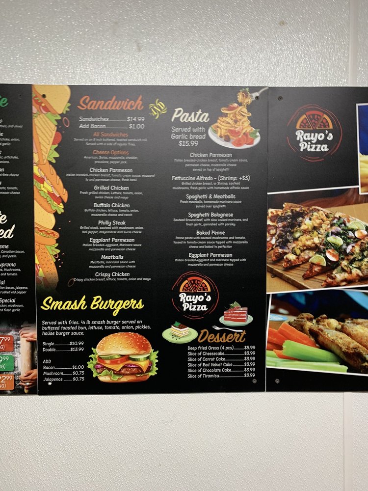 Rayo's Pizza in Hayward, CA offers an extensive menu of delicious Halal pizza, burgers, and appetizers. The restaurant provides delivery, takeout, wheelchair accessibility, outdoor seating, and catering options. Customer favorites include the Carne Asada Pizza, Smash Burger, and unique fusion dishes like the Pulled Beef Brisket Pizza. Reviewers praise the generous toppings, fresh ingredients, and friendly service at Rayo's. The establishment is known for its flavorful pizzas, crispy chicken wings, and savory garlic bread. With a range of options for different preferences and dietary needs, Rayo's Pizza is a must-visit spot for pizza lovers in the Bay Area. The ambiance is described as laid-back, making it a great place for families and friends to enjoy a satisfying meal together.